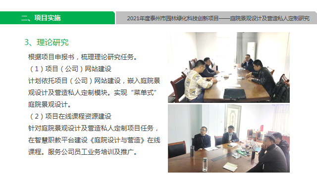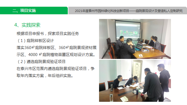 2021年11月24日,泰州市泰元園林建設有限公司設計總監(jiān)邵國榮、項目經(jīng)理虞九東。在泰州市住房和城鄉(xiāng)建設局參加泰州市園林綠化科研項目推進會。