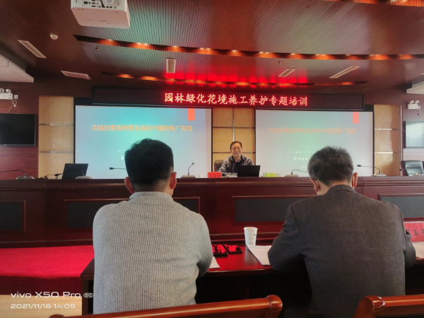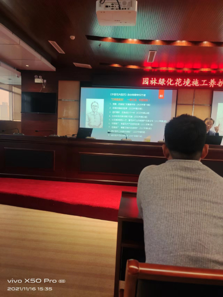 2021年11月16日,泰州市泰元園林建設(shè)有限公司項目經(jīng)理虞九東在泰州市住房和城鄉(xiāng)建設(shè)局參加成海鐘教授關(guān)于園林綠化花鏡施工養(yǎng)護專題培訓(xùn)